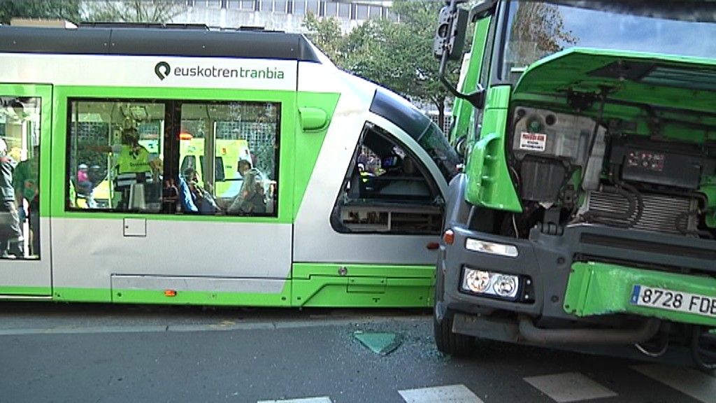 8 zauritu Bilbon, tranbiak eta zabor-kamioi batek talka egin ostean