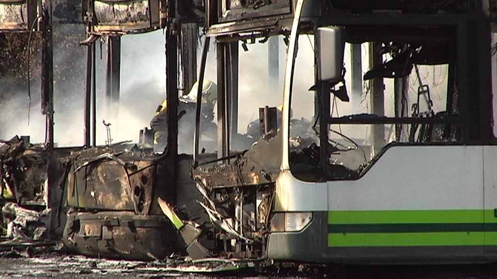 Sute batek Bizkaibus konpainiako hiru autobus guztiz hondatu ditu