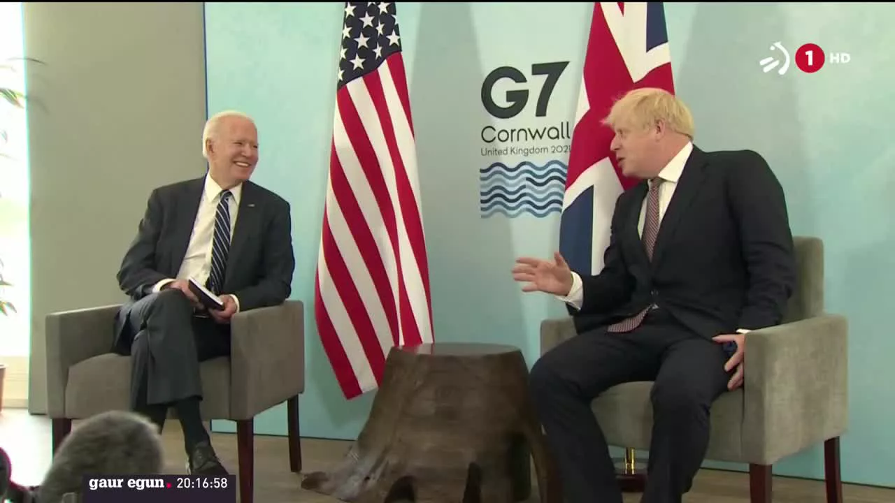 Joe Bidenek Europako bidaian lehen geldialdia Erresuma Batuan egin du. Brexitak Ipar Irlandako bakean eraginik izan ez dezan ahaleginak egiteko eskatu dio Bidenek Johnsoni.