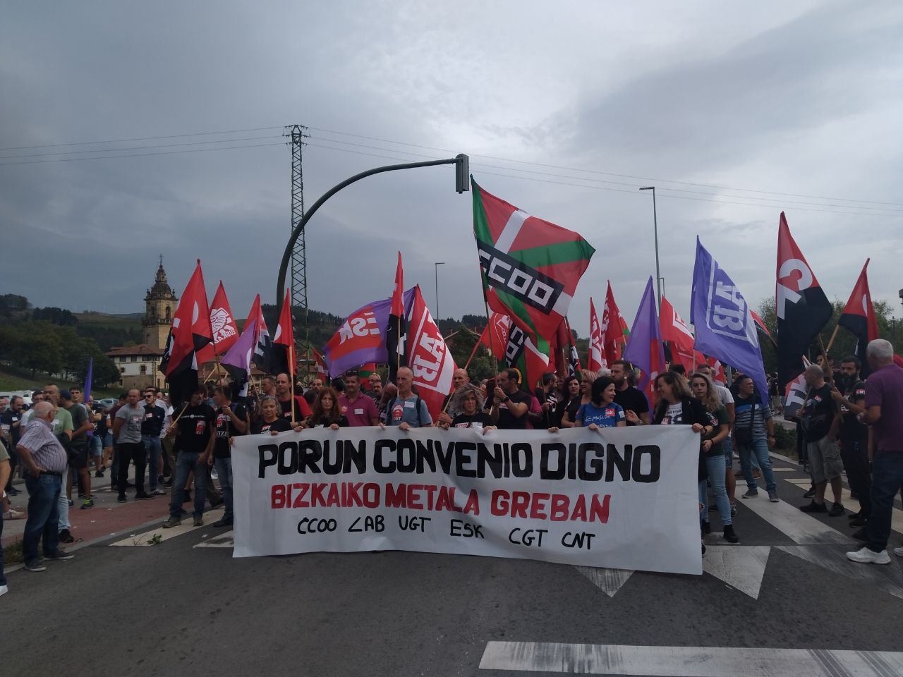 Manifestazioak egin dituzte Barakaldon eta Basaurin; batetik, CCOO, LAB eta UGT sindikatuek deituta, eta bestetik, ELAk. Zubia igarota, asteazkenean, hilaren 2an, hirugarren greba eguna egingo dute.