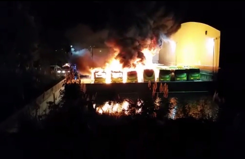 Sute handi batek Bizkaibuseko zortzi autobus erre ditu Derion