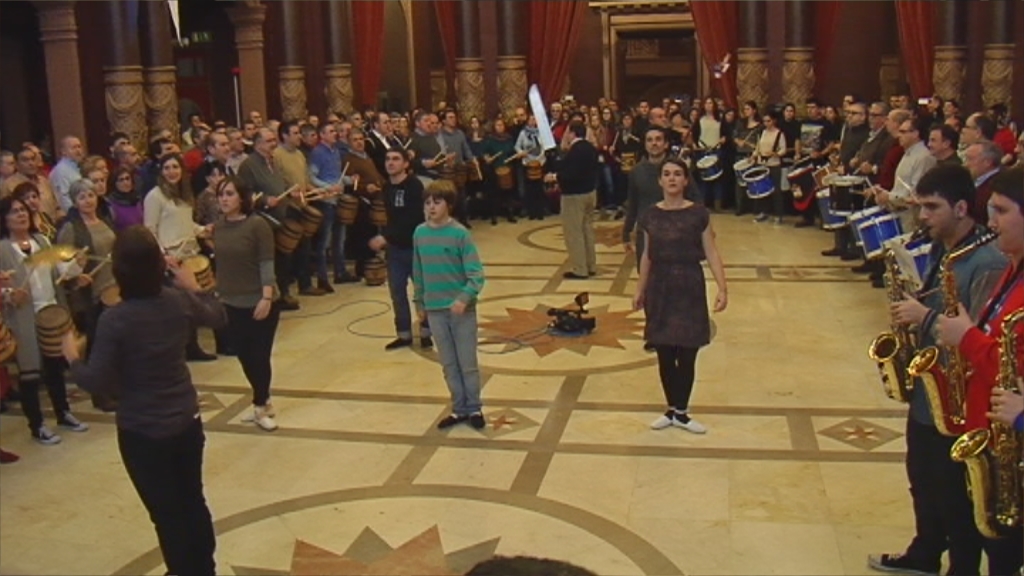 Donostiako Aste Nagusiko irekiera ekitaldian Artilleroren doinuek batu dituzte bi abesbatzak.
