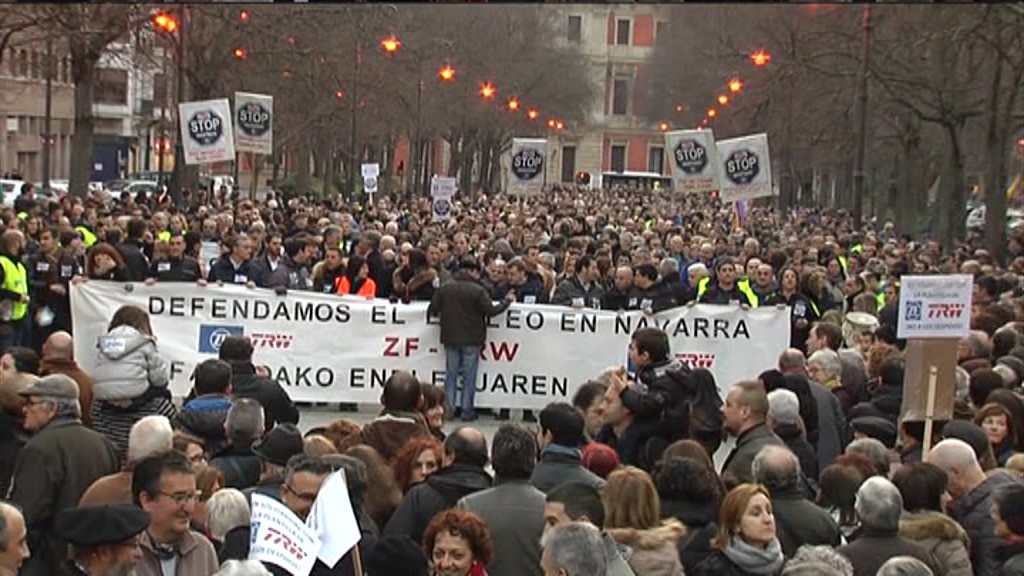 Milaka herritar bildu dira Nafarroako hiriburuan Landaben industrigunean dagoen ZF-TRW lantegiko beharginei elkartasuna adierazteko asmoz.