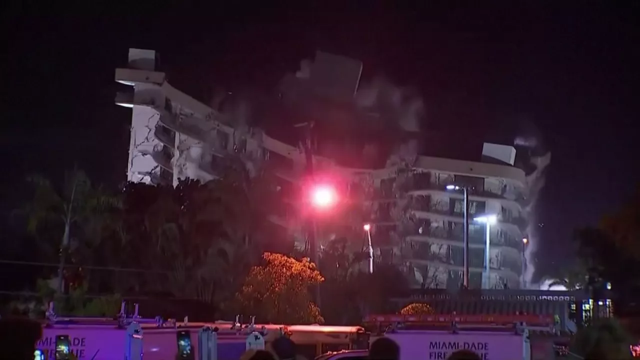 Eraispena beharrezkoa izan da Miamira hurbiltzen ari den Elsa ekaitz tropikalarekin lotutako euriteek eta haizeek oraindik zutik zegoen egitura ezegonkorra bota ez zezaten.