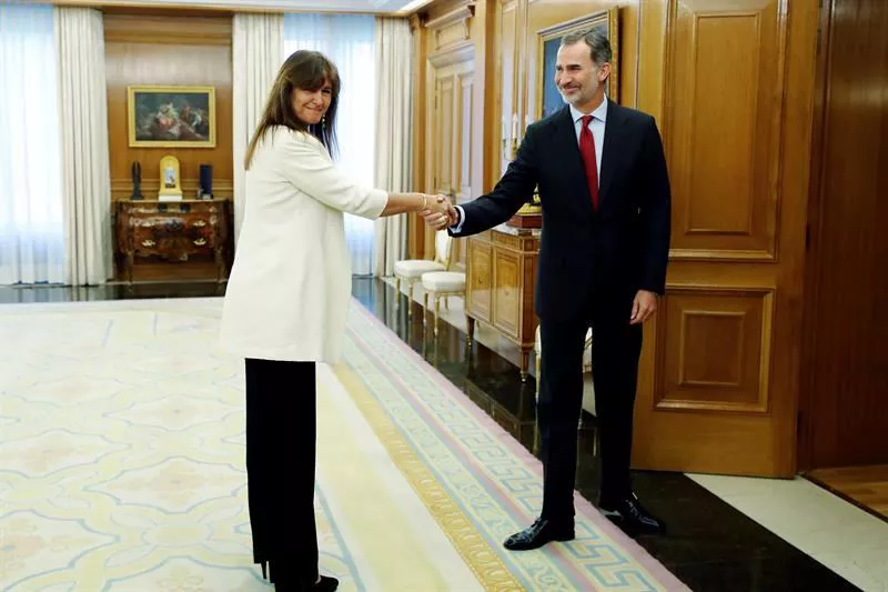 Kongresuko presidente berria, Meritxell Batet, Zarzuelan izan da Felipe VI.ari XIII legealdiaren hasieraren berri emateko.