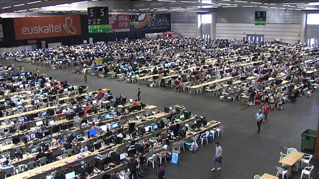 Informatikako 6.000 zale baino gehiago bildu dira 2015eko Euskal Encounterren, Barakaldoko BECen. 4.096 ordenagailurekin jolasten eta nabigatzen ari dira.