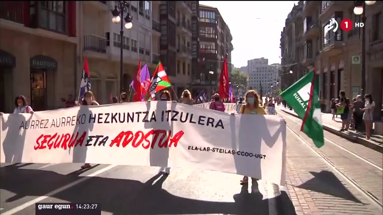 Sindikatuek "ikasgeletara itzulera seguru eta adostu" bat eskatu dute kaleetan