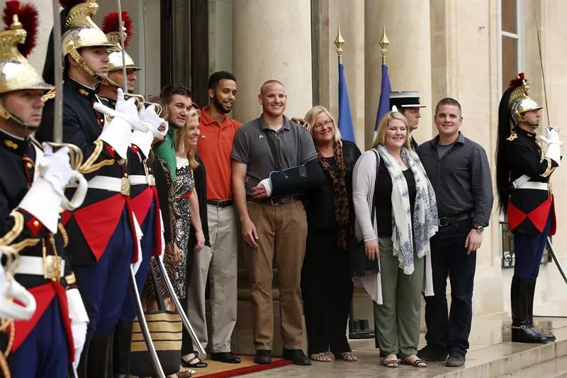 "Egoera dramatikoetan egin ahal denaren eredua eman zuten", esan du Frantziako presidenteak bidaiari horien gainean, herrialdeko saririk gorena eman dienean.