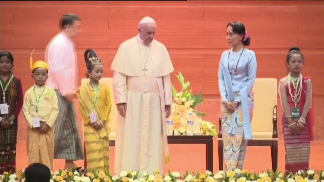 Frantzisko Birmanian da, aita santu batek bertara egindako lehen bisitan