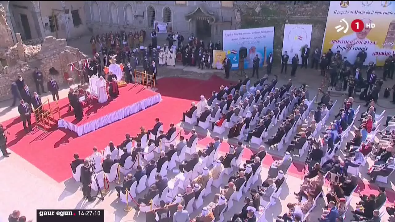 Gaur amaitzen da Aita Santuak Iraken egin duen bisitaldia. Mosulen, txikizioaren ikur bihurtu den hirian, Frantziskok esan du jaungoikoaren izenean gerra egitea ez dela zilegia.