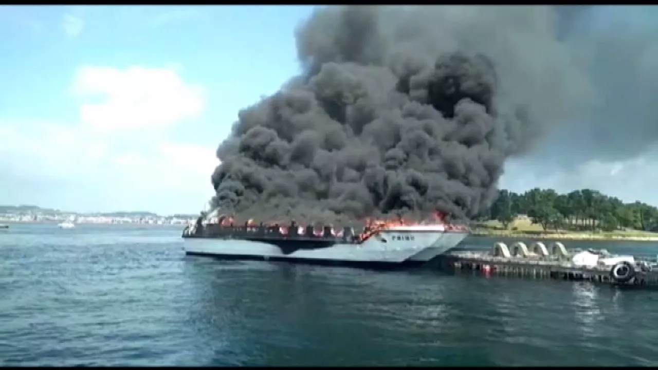 48 bidaiari zeramatzan ontzi turistiko batek su hartu du Arousan (Galizia)