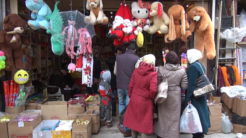 Gezurra badirudi ere, gerra giroan ere, posible da Gabonak ospatzea. Damaskoko alde zaharrean zuhaitzak eta apaingarriak saltzen dituzte. Zenbait egunez, izua alde batera utziko dute.