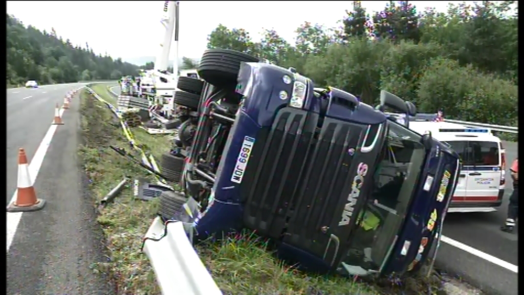 Auto-ilarak AP-68an, Urkabustaizen, kamioi batek istripua izan ostean