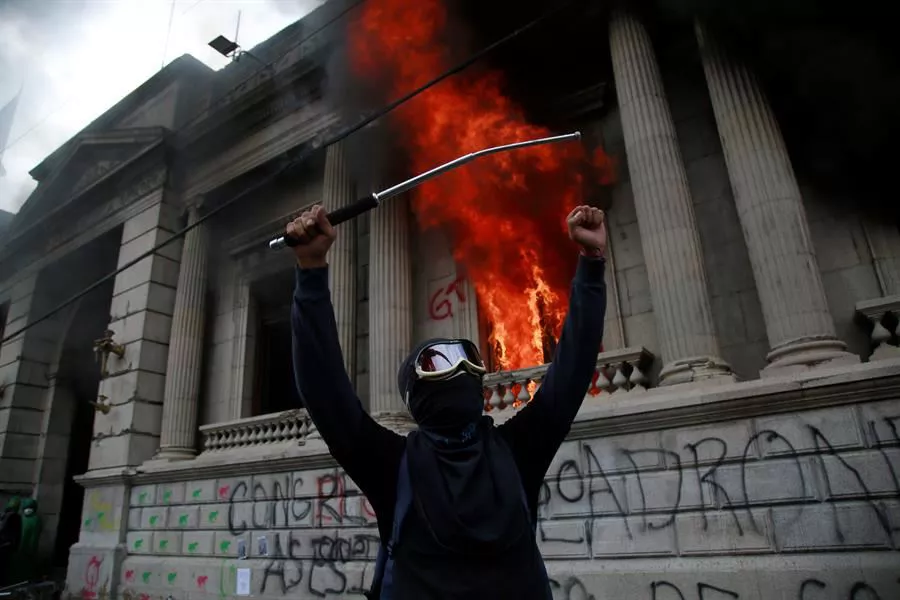 Ehunka manifestarik Guatemalako Kongresua hartu dute, eta ondoren su eman diote