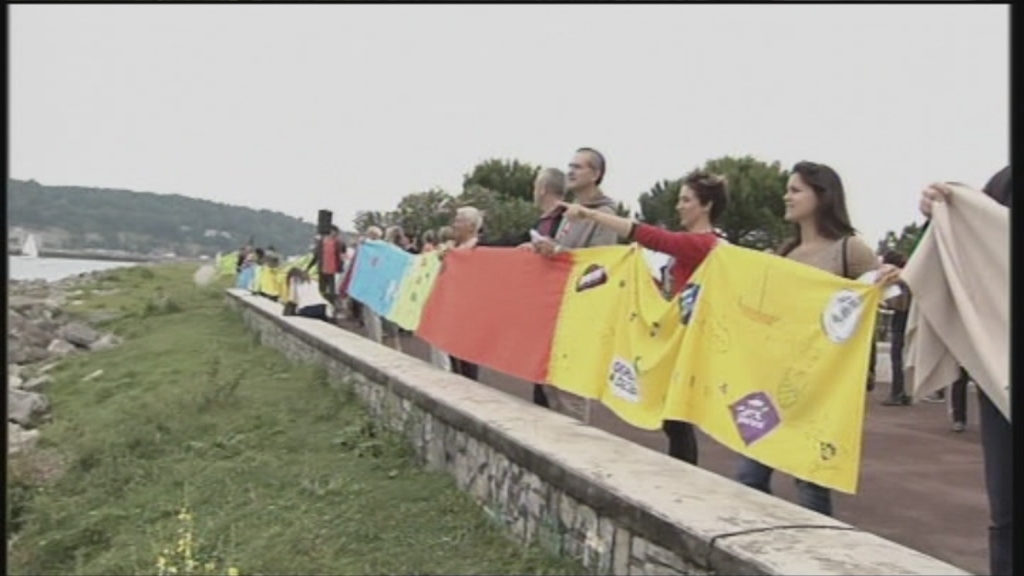 Gure Esku Dago dinamikak joste eguna antolatu du Euskal Herriko hainbat txokotan, esaterako Hendaia eta Hondarribia artean.