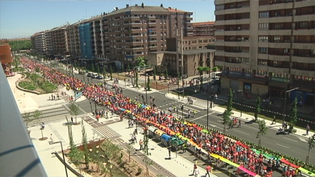 Gure Esku Dago ekimenak deituta, ekitaldia egin dute goizean Iruñeko alde zaharreko kaleetan. Milaka lagunek hartu dute parte festa giroan.