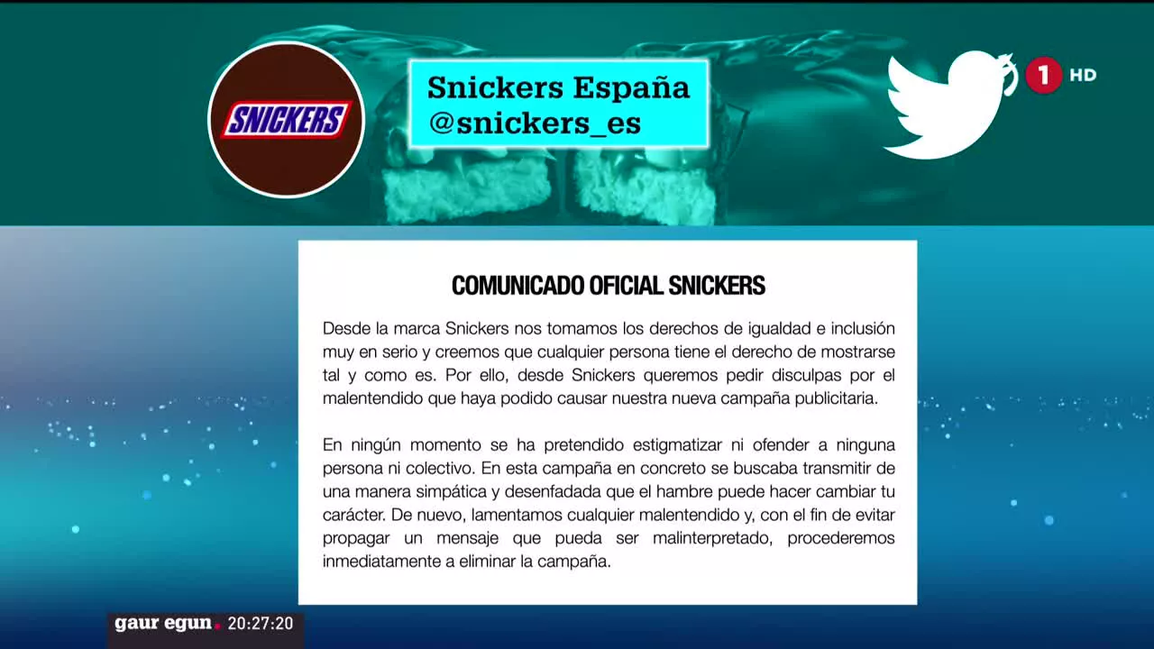 Snickers txokolatinen iragarki batek polemika piztu du homofoboa izateagatik