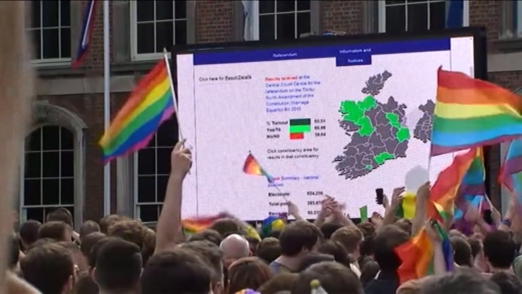 Irlandan homosexualen arteko ezkontza legeztatzeko erreferenduma egin dute eta, behin-behineko emaitzen arabera, baiezkoak irabazi du.