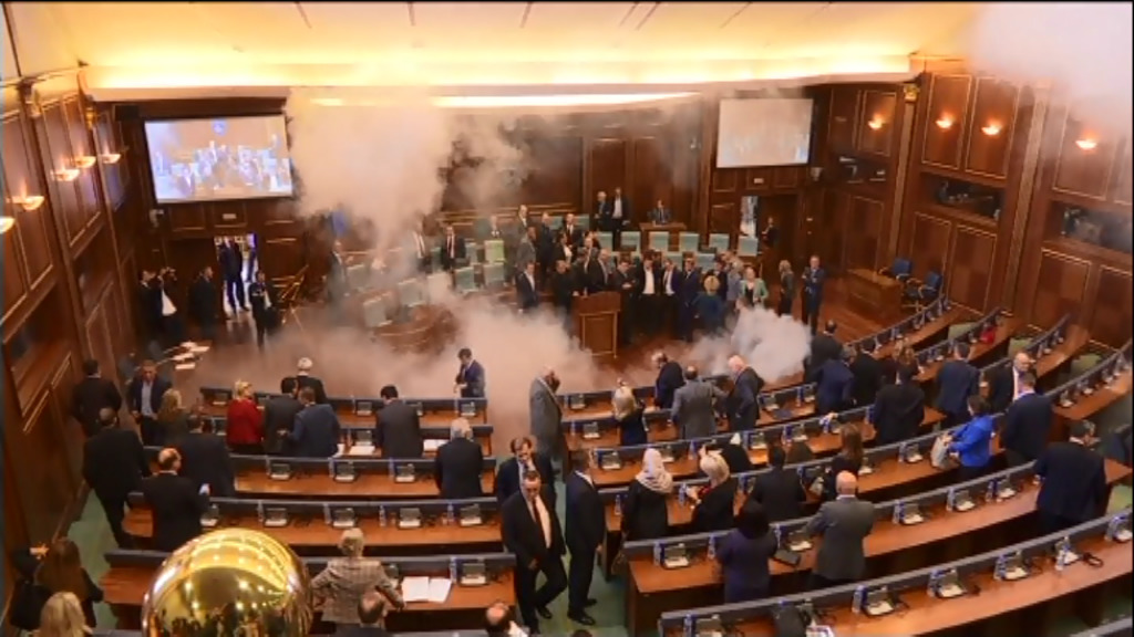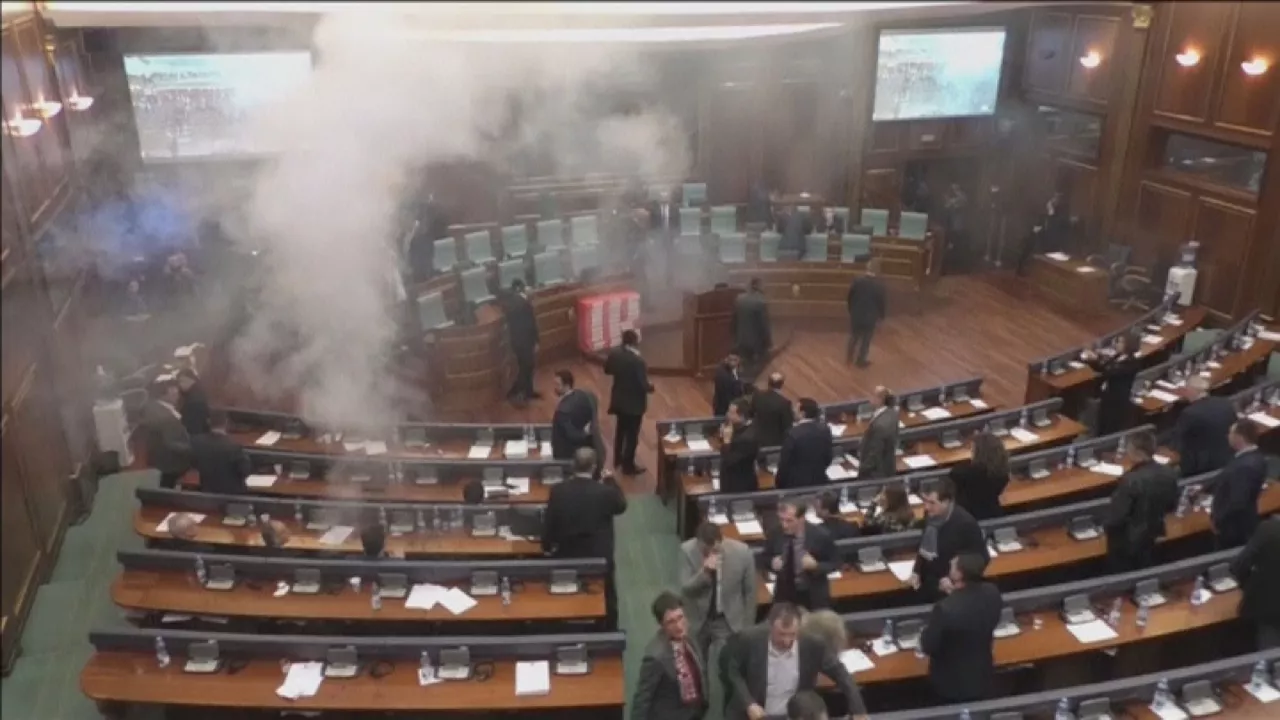 Oposizioko alderdi nazionalistek gas negar-eragilea bota dute Kosovoko Parlamentuan, Serbiarekiko harremanen inguruko bilkura ospatu ez zedin.