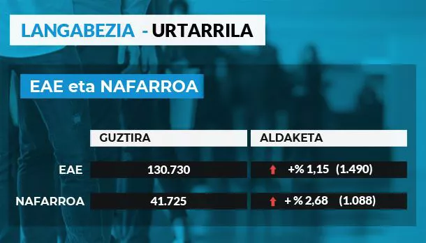 130.730 pertsona zeuden lanik gabe urtarrilean EAEn (iaz baino % 11,12 gehiago). Nafarroan, berriz, 41.725 langabe zenbatu zituzten (iazko urtarrilean baino % 23,18 gehiago).