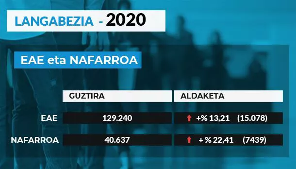 15.078 langabe gehiago EAEn, eta 7.439 gehiago Nafarroan, 2020an