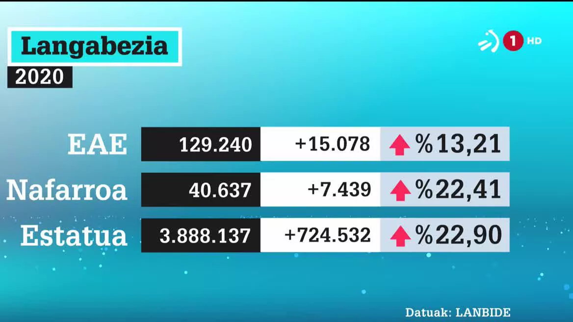 Langabezia % 13,21 hazi da EAEn 2020an, eta Nafarroan, berriz, % 22,41.