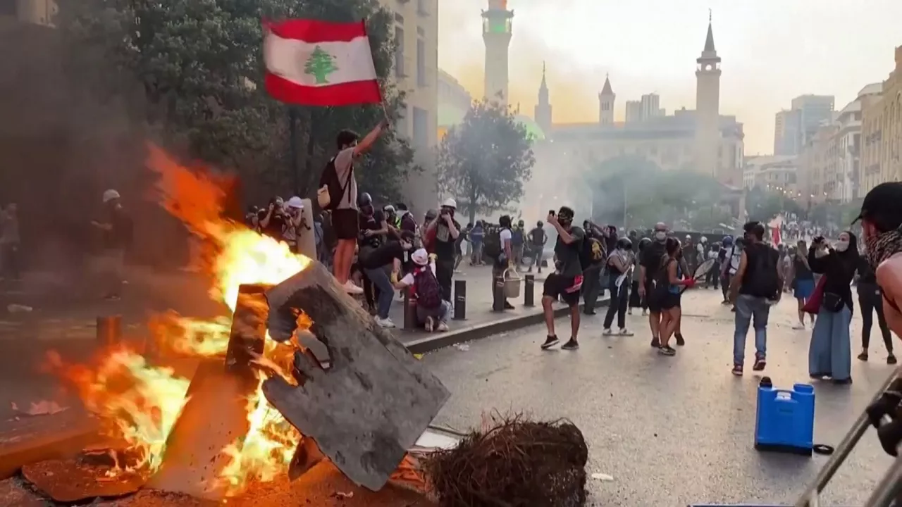 Manifestariek Beiruteko kaleak hartu dituzte portuko leherketaren urteurrenean. Ekitaldian zehar, istiluak sortu dira eta poliziak gas negar-eragilearekin erantzun du.