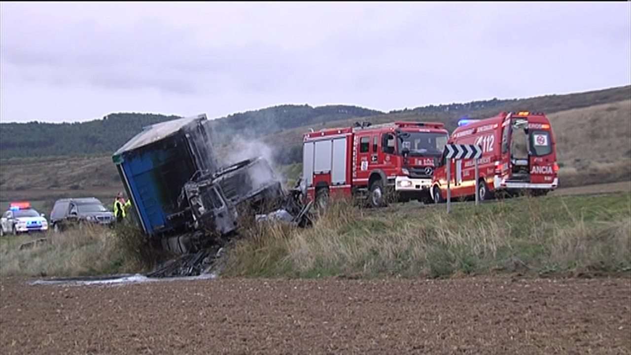 Sorladan auto batek eta kamioi batek elkar jo dute; kolpearen ostean bi ibilgailuek su hartu dute. Hiru pertsona hil dira ezbeharrean.