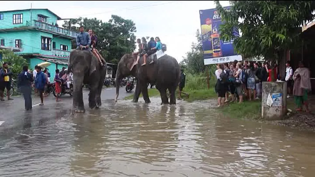 Batzuk gurdietan eta beste batzuk elefanteen gainean atera behar izan dituzte Chitwan-go parke nazionaletik. Azken lau egunetako euriteen ondorioz, 70 pertsona hil dira gutxienez.
