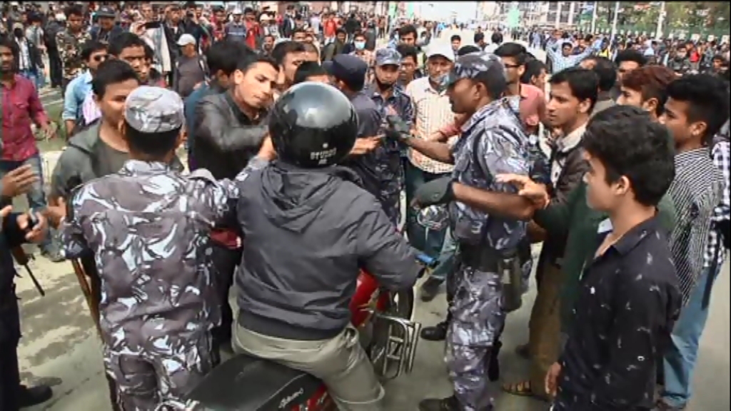 Katmanduko ehundaka herritar kalera irten dira laguntza eskasiagatik protesta egiteko.