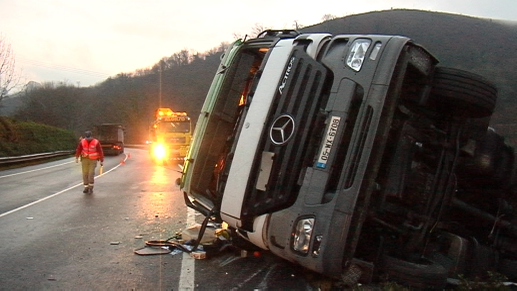 Auto-ilarak AP-68an, Urkabustaizen, kamioi batek istripua izan ostean