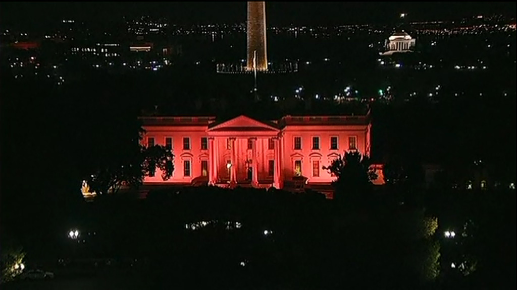 AEBko presidentearen egoitza argi arrosaz argiztatu dute bularreko minbiziaren aurkako kontzientziazio-kanpaina baten harira.