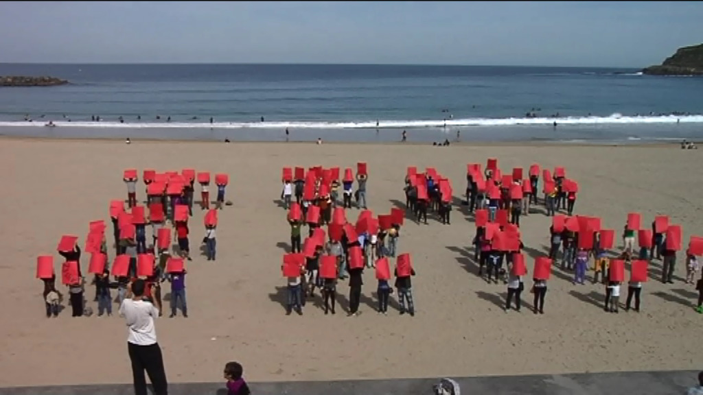 Itun hauen onuradunak enpresa multinazional handiak direla salatu dute. Bilbon, Gasteizen eta Iruñean ere horrelako mosaikoak eratu dituzte.