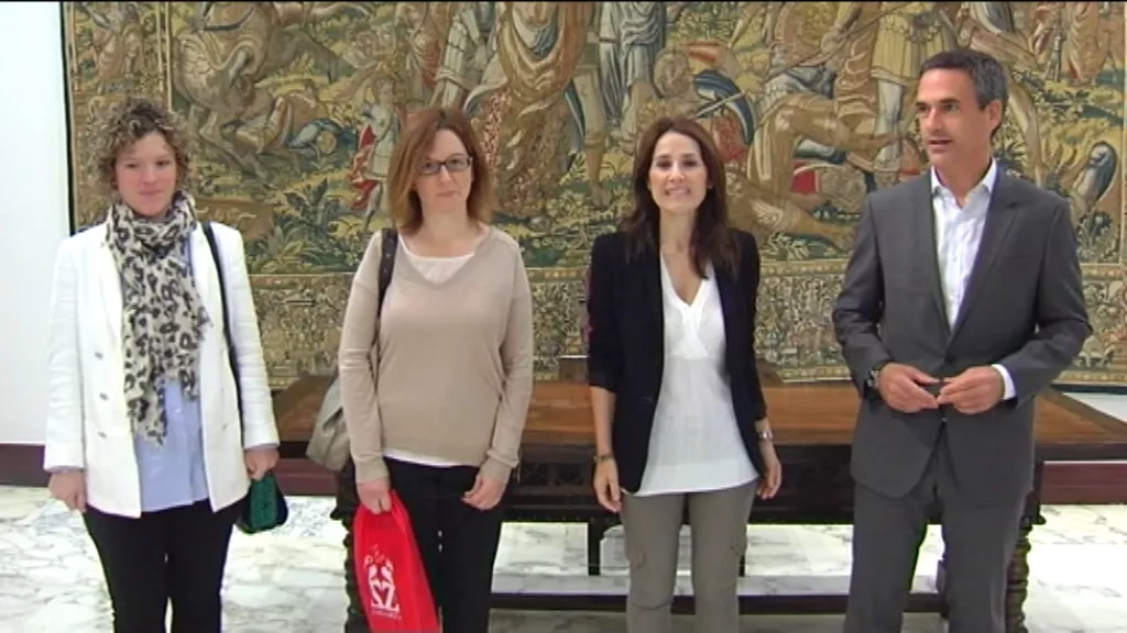 Bakartxo Tejeriak, Eusko Legebiltzarreko presidenteak, aurten Zangotzan ospatuko den Nafarroa Oinez jaiaren antolakuntzako kideak hartu ditu Gasteizen.