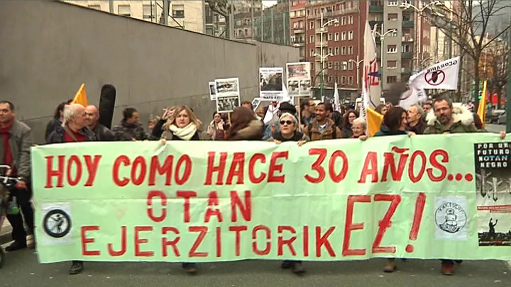 Koordinadora antimilitaristak mobilizazio bat egin du Bilbon larunbat honetan, NATOn sartzea ala ez erabakitzeko egin zen erreferendumaren 30. urteurrena bete denean.