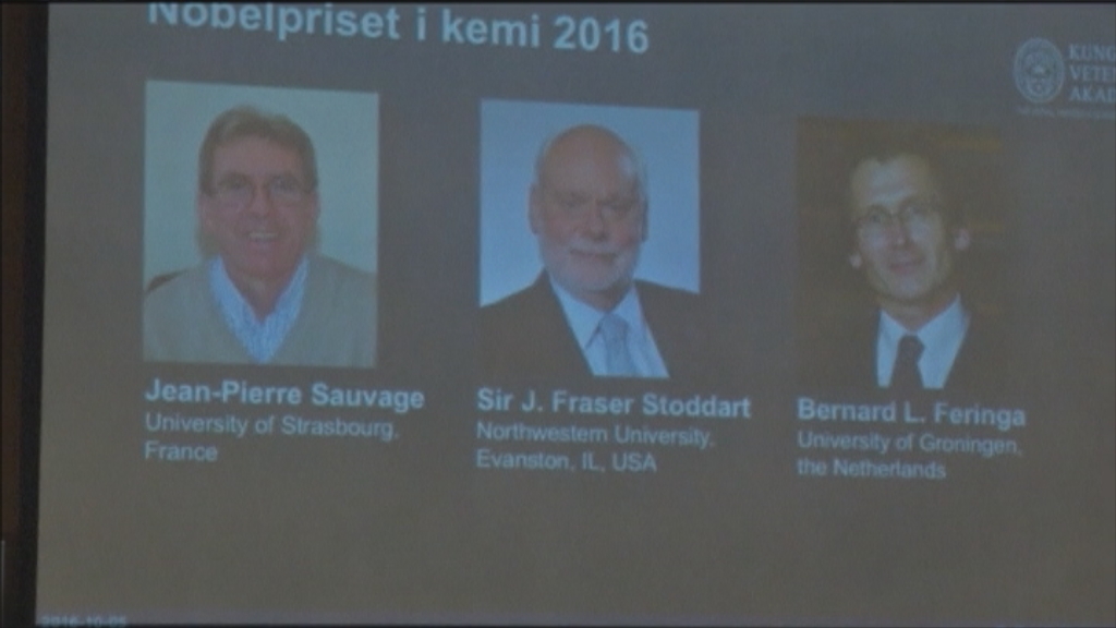 Savage, Stoddart eta Feringa, 2016ko Kimikako Nobel Saria