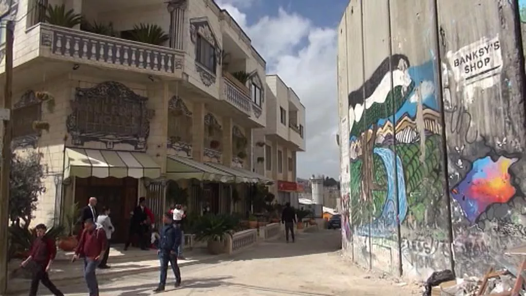 Nazioarteko legeak aspaldi ilegaltzat jo duen Israelgo harresiaren aurkako arte-lana sortu du Banksy marrazkilari britaniarrak. Hotela ireki du gaur harresitik lau metrora.