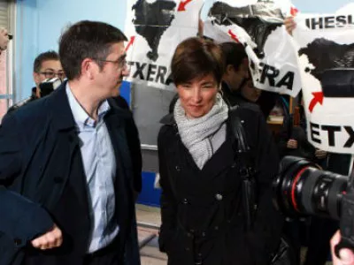 2012eko hauteskunde autonomikoetan izan zen gertaera. Patxi Lopez eta haren ematea, Begoña Gil, botoa ematera joan zirenean “preso eta iheslariak” etxera irakur zitekeen pankarta zabaldu zuten.