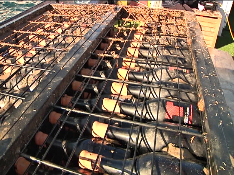Urtebetez Plentziako badiaren erdian urpeko ardotegian ontzen egonda gero igo dituzte gaur botilak.