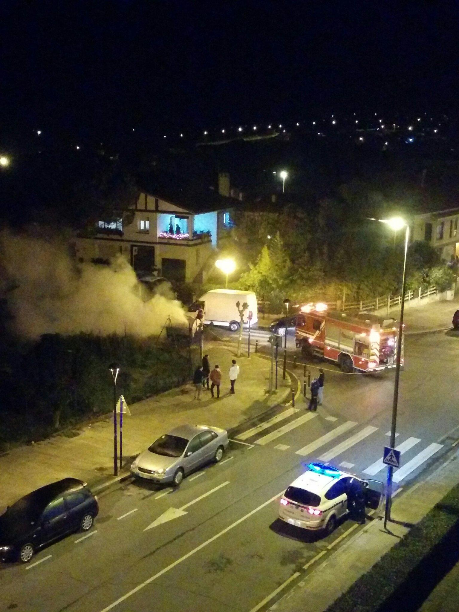 Ertzaintzak jakitera eman duenez, inguruan aparkatuta zegoen ibilgailu bat kaltetu dute sugarrek.