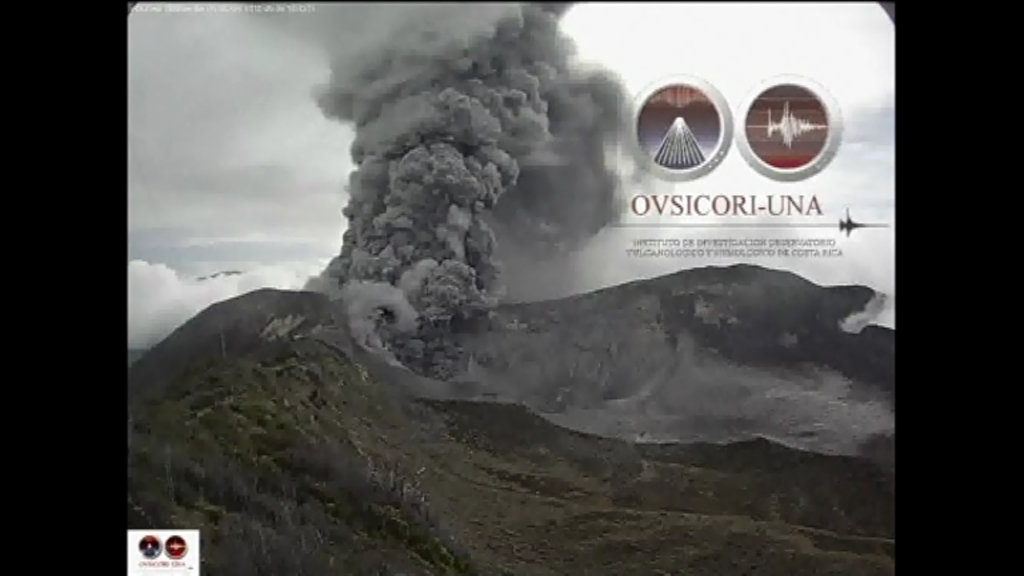 Costa Ricako ekialdean dagoen Turrialba sumendia erupzioan sartu da eta lau kiloko harriak bota ditu kilometroko distantziara.