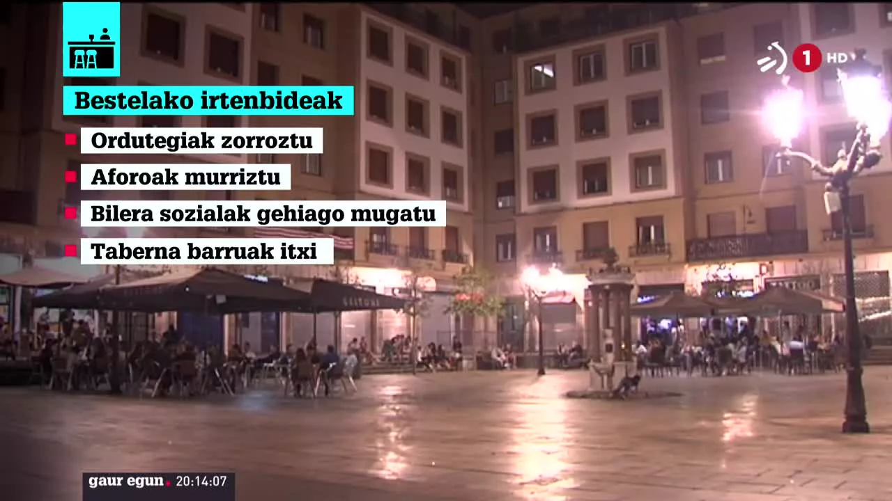 Dena dela, Jaurlaritzak ezarritako zenbait murrizketa bete beharko dituzte ostalaritza establezimenduek; adibidez, 20:00etarako itxiko dituzte ateak.