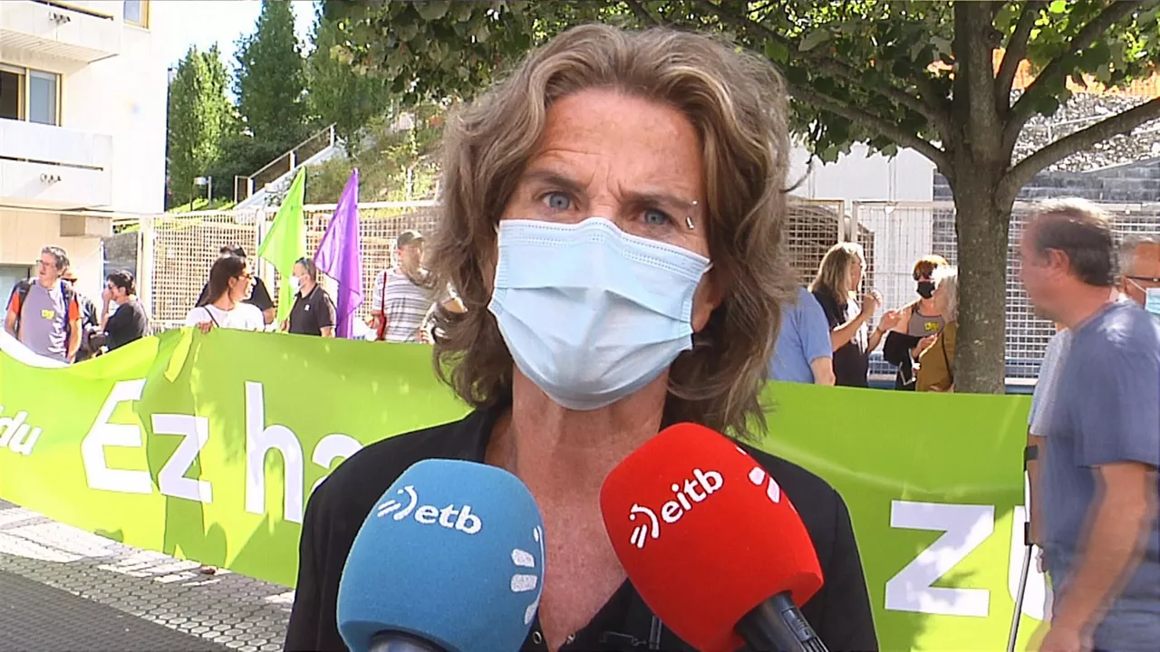 Parte-hartzaileek pankartak itsatsi dituzte, "azpiegitura-lan xahutzaile eta zentzugabe honen aurka".