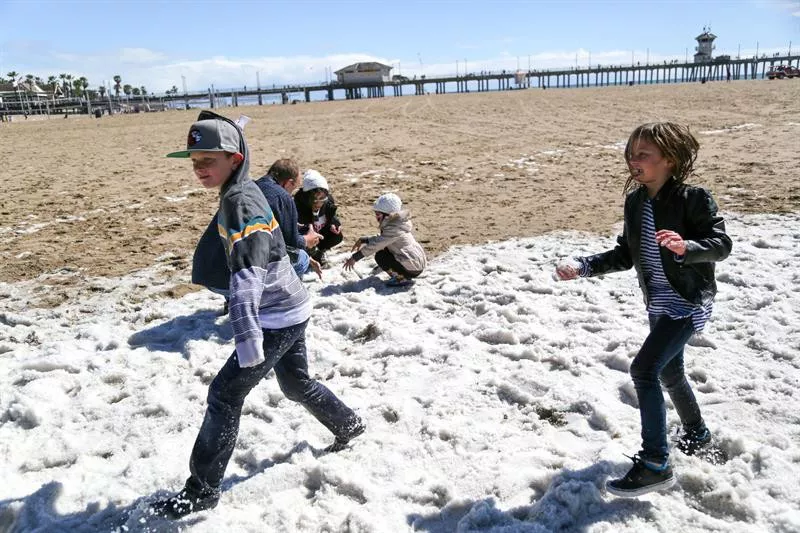 Kalifornia hegoaldeko biztanleek ezin zuten sinetsi atzo gertatutakoa. Ekaitz baten ondorioz txingorrak hondartzak zuritu zituen.