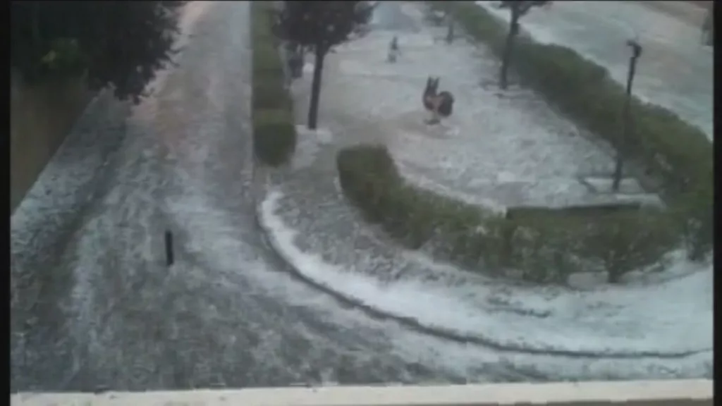 Ezusteko urtaro aldaketa gertatu zen atzo arratsaldean Soriako Almazan herrian. 30-40 minutu inguru iraun zuen txingor zaparradak, eta kaleak zuri-zuri utzi zituen. Kalte materialak handiak dira.