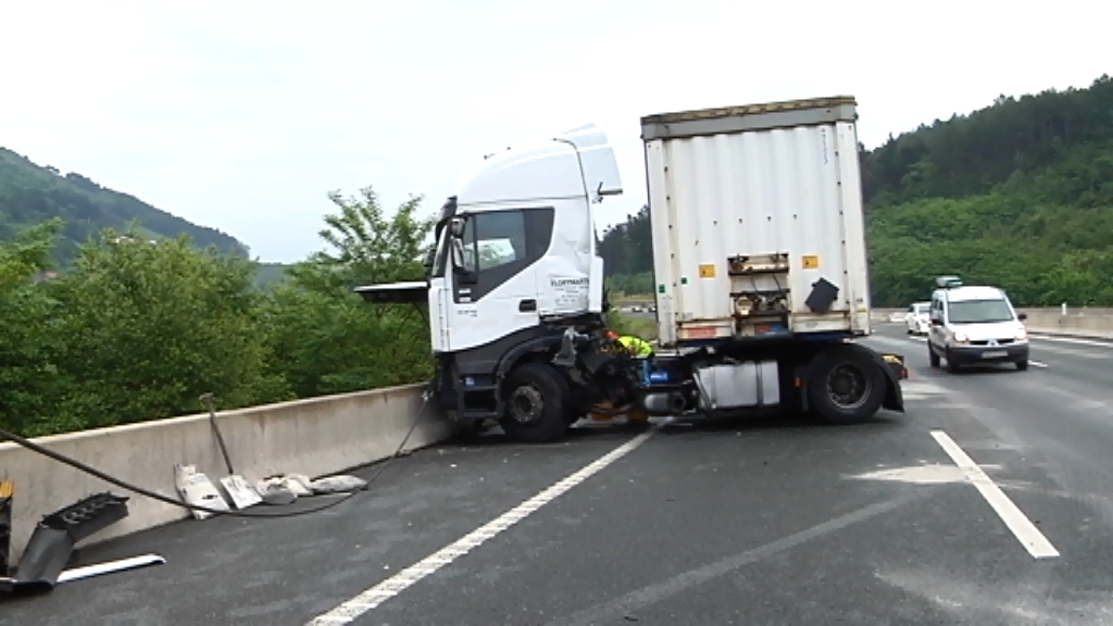 Kamioi batek artaziarena egin du AP-8an, Usurbil parean