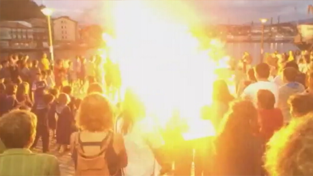 Zarautzen San Joan gaua ospatzen ari ziren lagunek susto handia hartu zuten sutzarrean leherketa bat gertatu zenean. Ez zen inor zauritu (Whatsapp bidez jasotako bideoa).